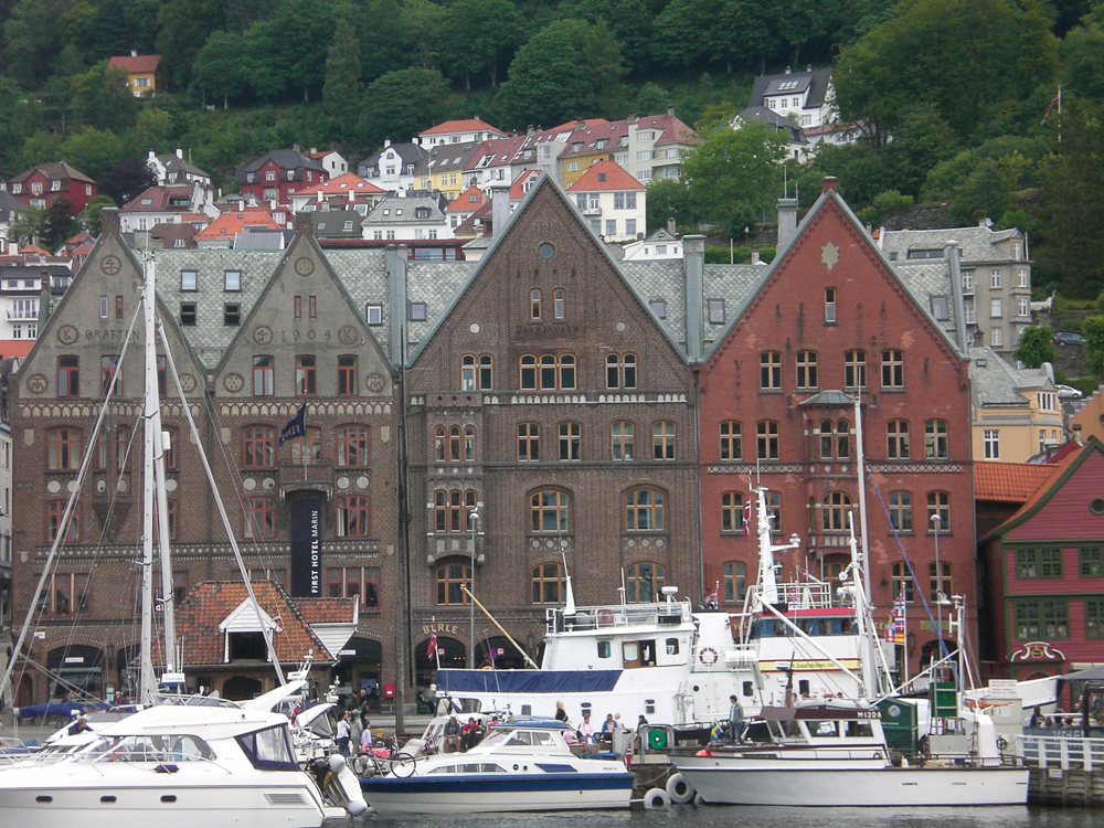 Il porto di Bergen e sullo sfondo gli antichi edifici della Lega Anseatica