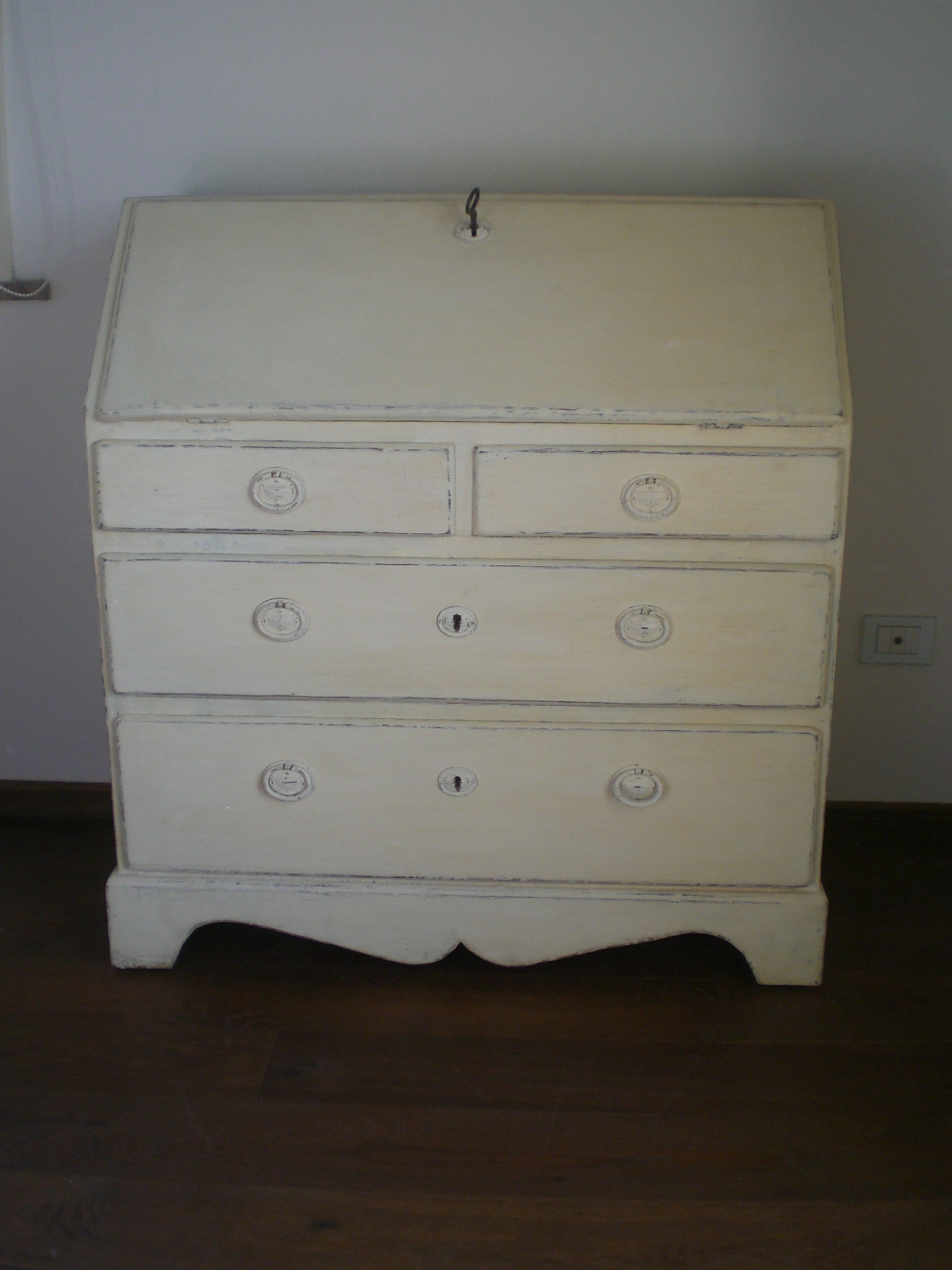 Il vecchio scrittoio in legno appariva un po’ troppo rustico –tirolese: lo abbiamo così adattato alla camera di una ragazzina