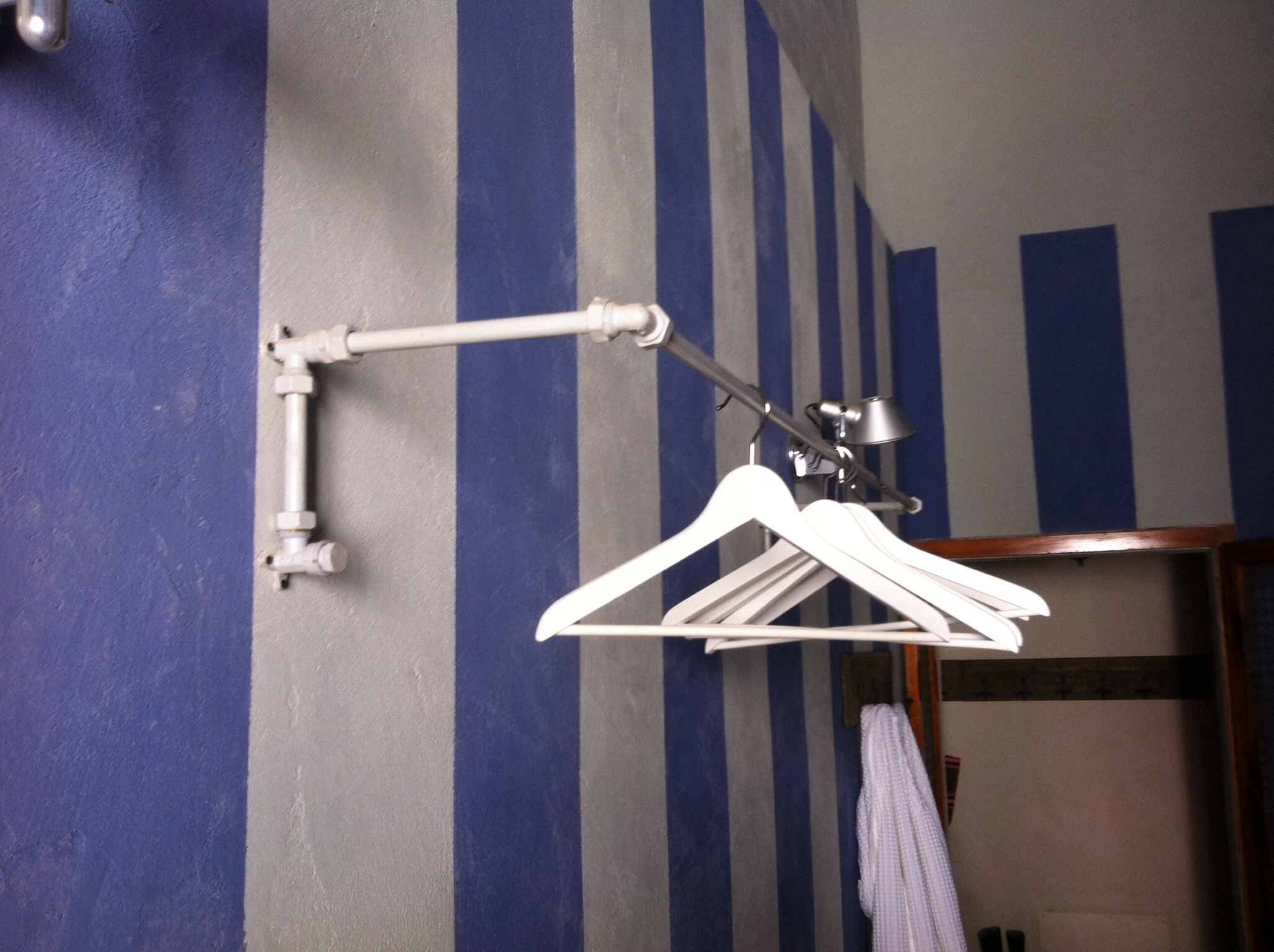 Righe verticali e tubi idraulici che formano un appendiabiti