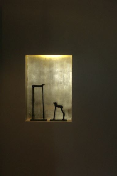 La nicchia rivestita in foglia d’oro ospita due piccole sculture