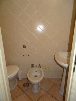 Eliminato il gres abbiamo trattato le pareti del bagno con pittura a smalto