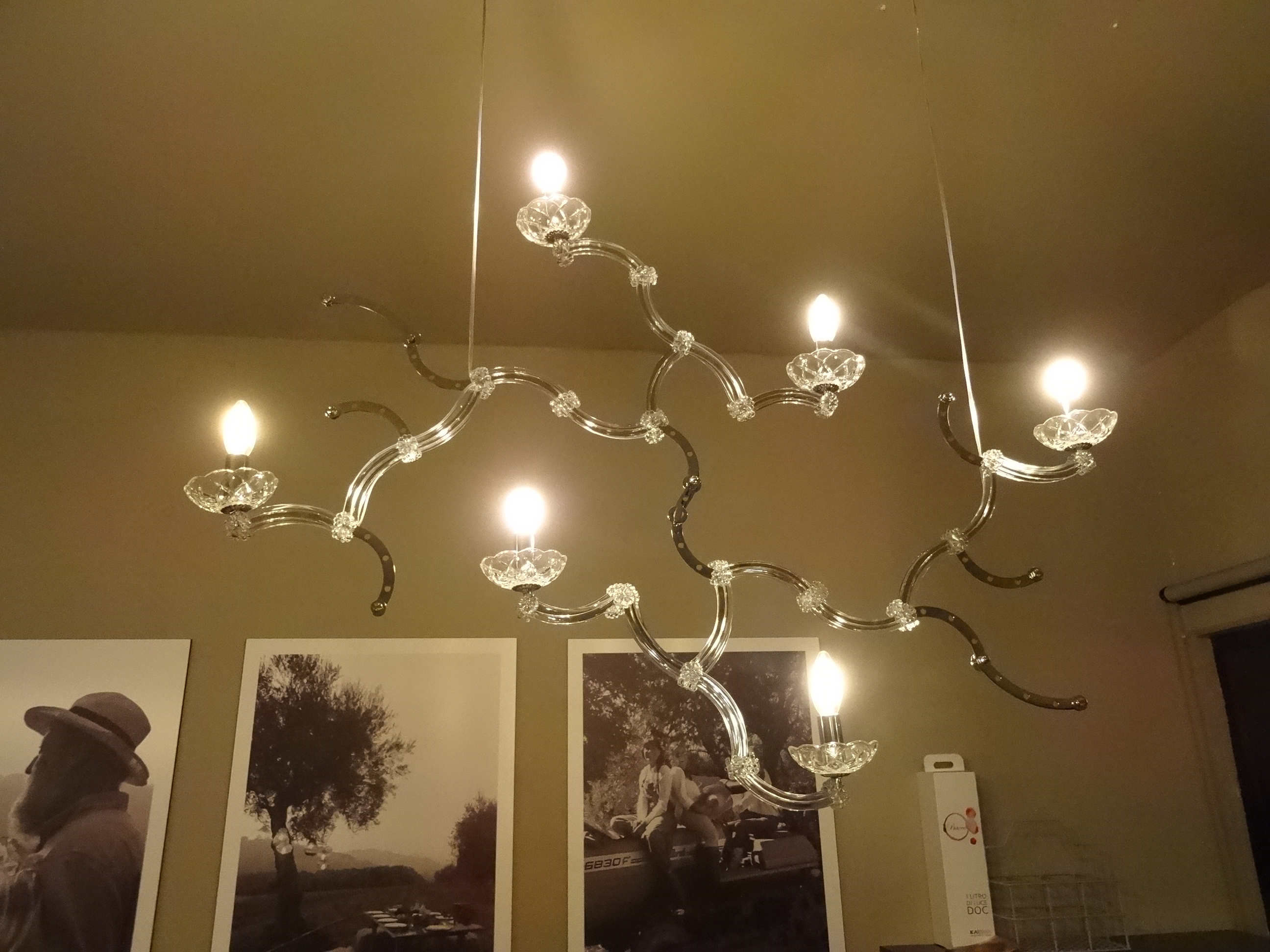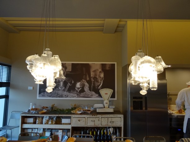 Nella accogliente cucina aziendale, le due sospensioni realizzate in vetro hanno un nome evocativo: Ceraunavolta Design Edmondo Testaguzza e Matteo Ugolini