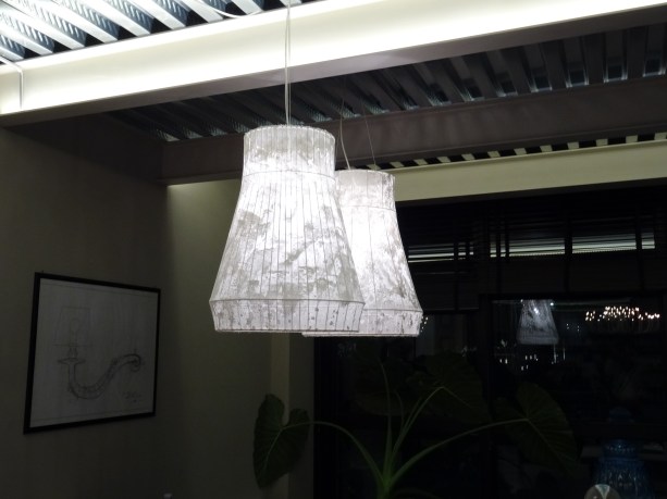 La luce calda di Ululì – ululà come una luna ispiratrice in versione “vecchi merletti”. Design Matteo Ugolini