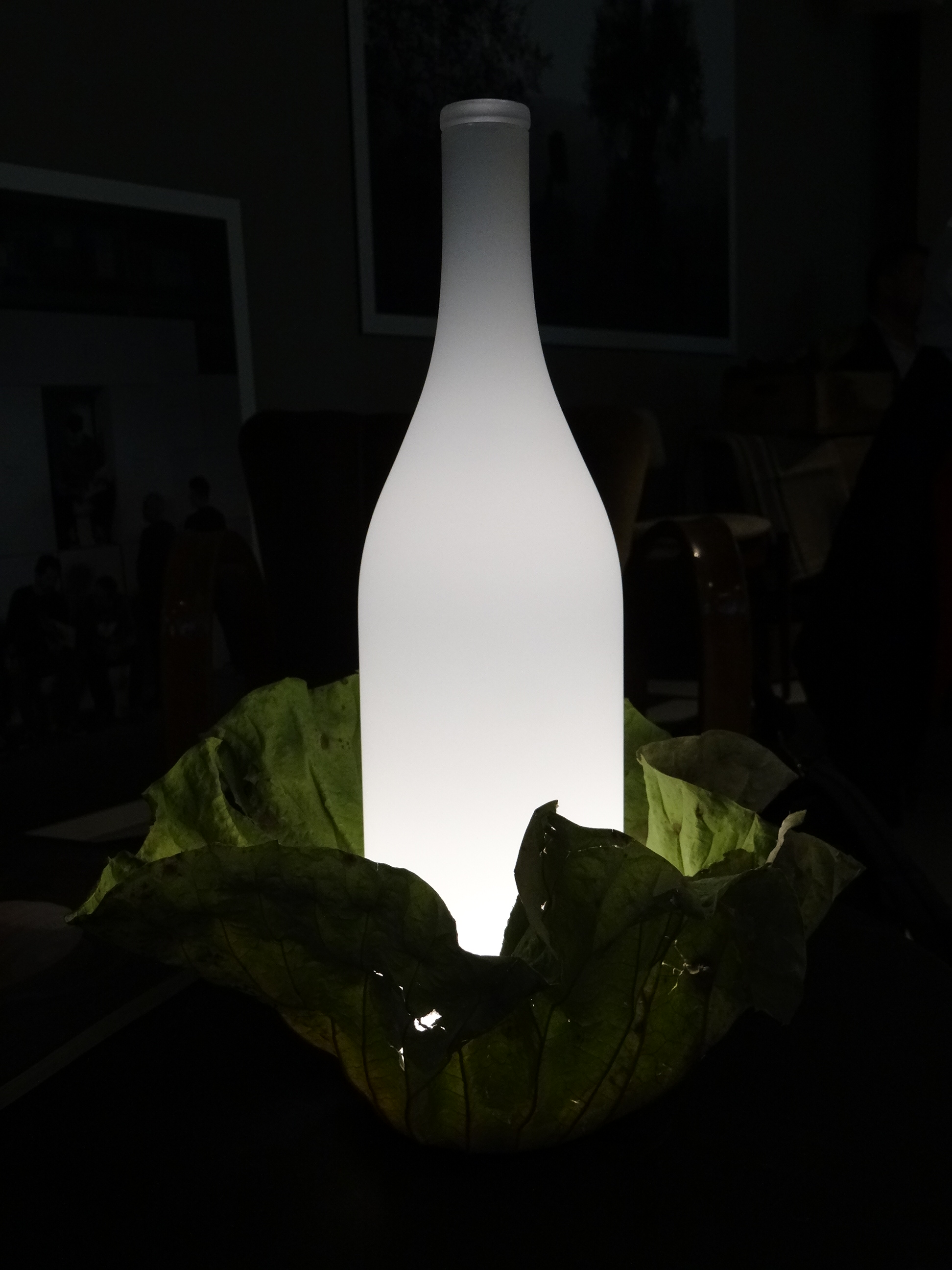 La lampada da tavolo Bacco è in vetro smerigliato, ha batteria ricaricabile e si può utilizzare in ambienti esterni