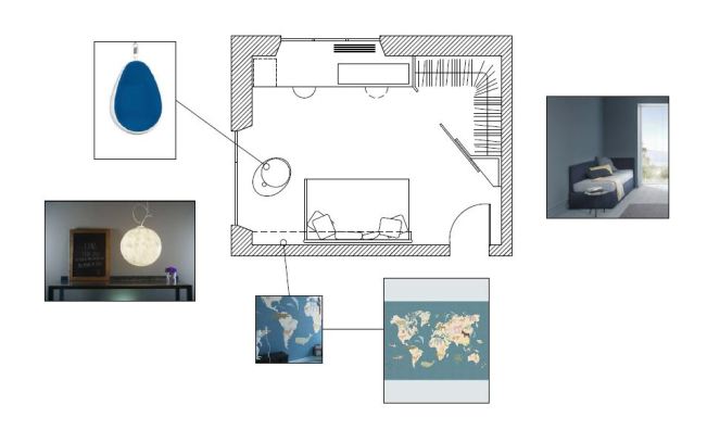 Cambia ad esempio la larghezza del letto, passando dai 90 centimetri dell’infanzia ai 120 in modo da poter all’occorrenza ospitare un’amica; questo “angolo di mondo privato” deve assolutamente rispecchiare gusto e personalità di chi lo vive. Ecco la camera che abbiamo progettato su misura per una teenager di 12 anni di nome Aurora che predilige i toni dell’azzurro e del blu.