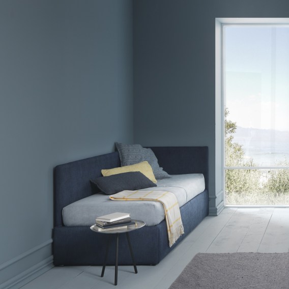 Il letto di Duomo Design con spalliera laterale ricorda un po’ un sofà. La larghezza di 120 cm rientra tra le misure di serie